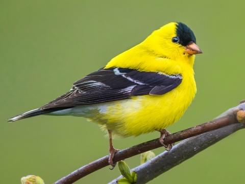Meowth “loves shiny coins” and is faintly yellow, so it’s been matched with the two most popular goldfinch species. The Lesser Goldfinch is a common backyard presence, and its plumage varies quite a bit between sexes and ages (an adult male is shown below, more variations can be found through the link). The American Goldfinch can be found year-round in most of the country, but on the West Coast it only appears during Winter.