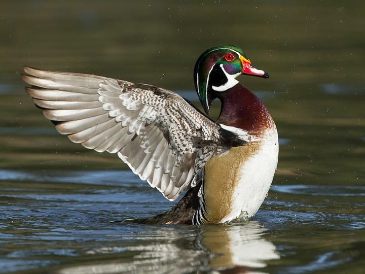 An easy one, the Mallard is the prototypical duck. While writing this I discovered a fun duck fact: only female mallards give the standard “quack” we all associate with ducks. The males give only a quieter, rasping sound. Meanwhile, the Wood Duck is less common, but can still be found year-round.